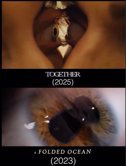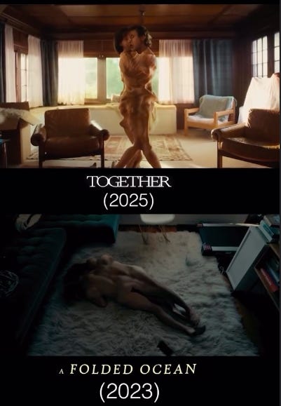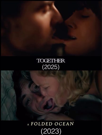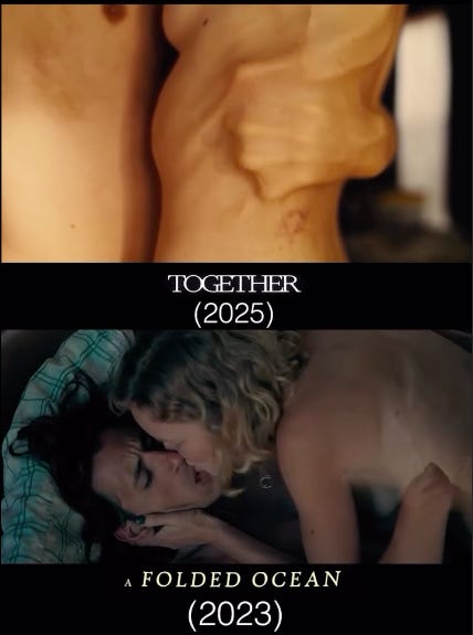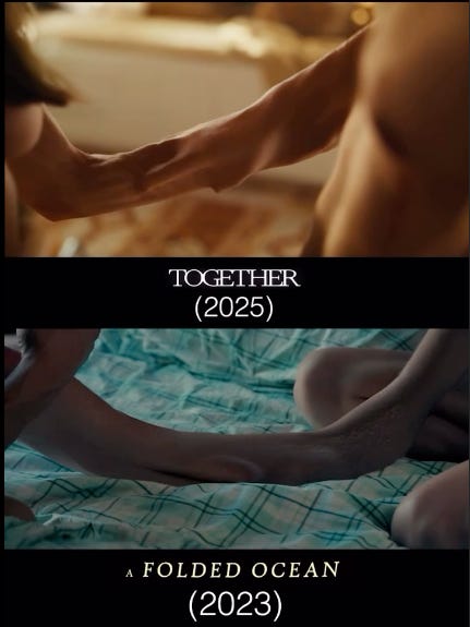 I was wondering if / when Ben Brewer was going to say something about Together, so I didn’t want to unless he decided to pull that cord. It was confusing when the lawsuit came about over the screenplay for Together, while I immediately thought it was a rip off of Ben Brewer’s 2023 A Folded Ocean, which premiered at the same Sundance Film Festival two years prior. So it’s a double rip-off. Cool.